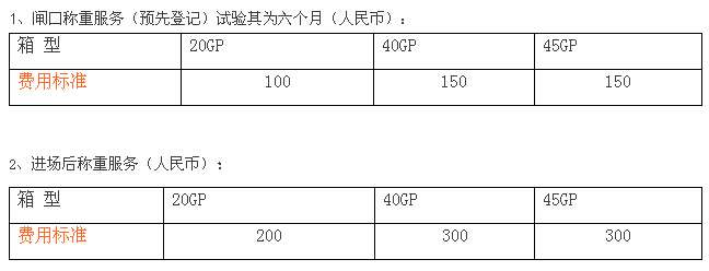 7、码头可接受托运人申请提供载货集装箱重量验证(VGM)过磅操作服务,具体实施细则另行公布;
